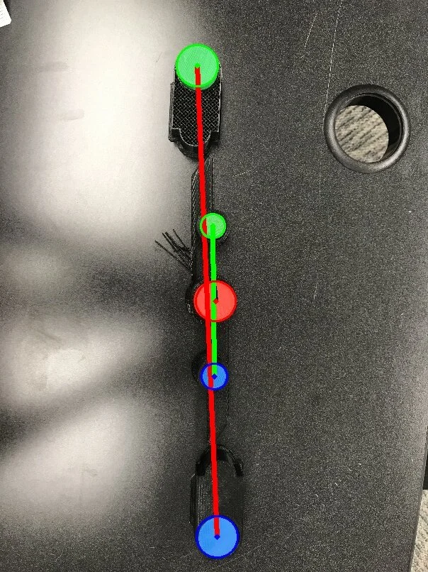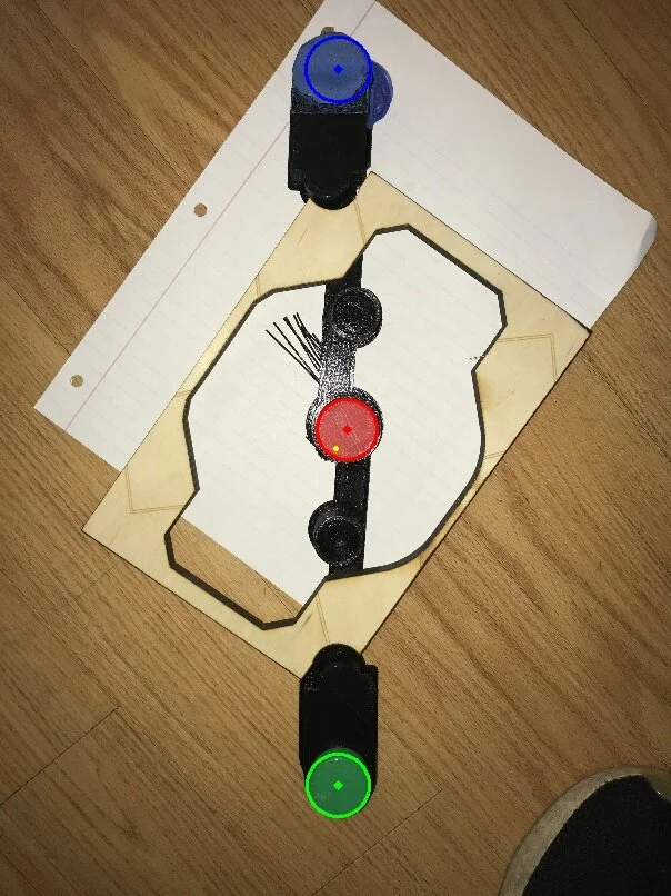 The landing marker needs to be able to provide the drone with its directional and rotational offsets from the landing pad. I decided that a simple design would just be two circles, but then realized that if the computer only detected one, it wouldn’t have enough information to land. For this reason, my first marker (rev1) had three circles: red, green, and yellow.