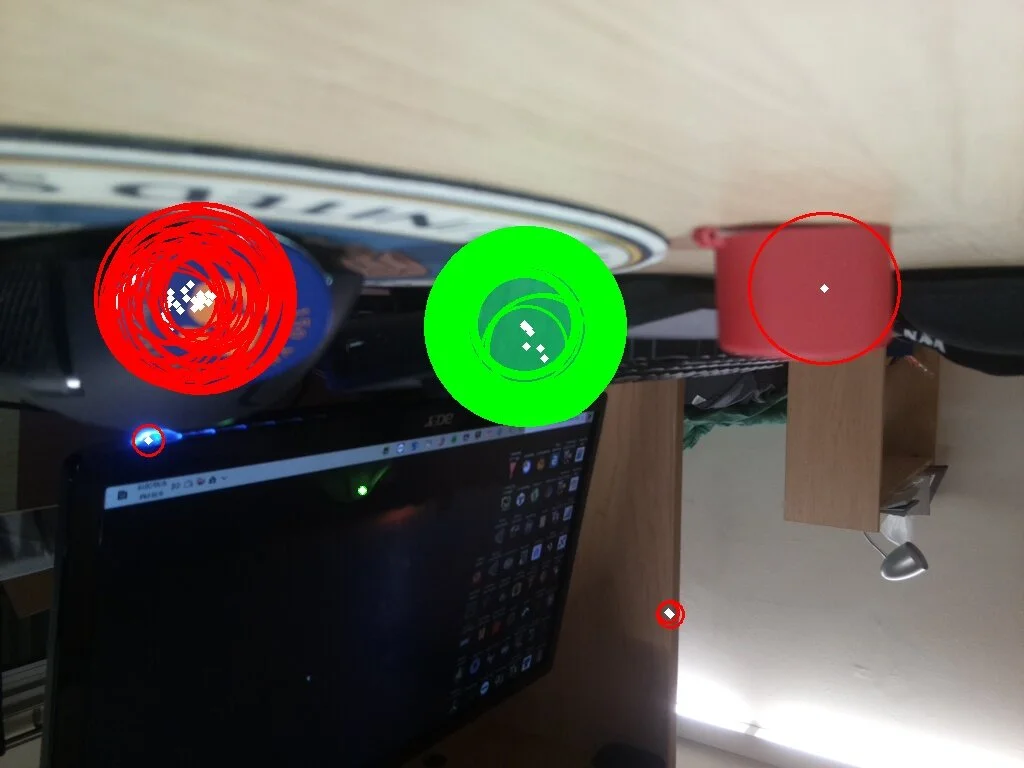 As someone who had never touched openCV before, I knew that writing the code for this project was going to be pretty challenging. I began with simply learning how to use openCV’s Hough circle detection method (2) to detect circles of different colors and sizes. After endless hours of reading the openCV docs, coding, and testing my detector against rendered images, I developed two programs: the class HCD (for ‘Hough Circle Detector’) and calculateDetectorParams.