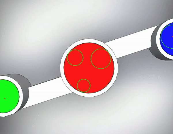 The only fault with this design was that if the circles were spread out enough for the drone to accurately find a line between them, the drone wouldn’t be able to see the outer two circles once it got below a certain altitude. To fix this, I simply added two inner circles and changed yellow to green since it was easier to work with in openCV.